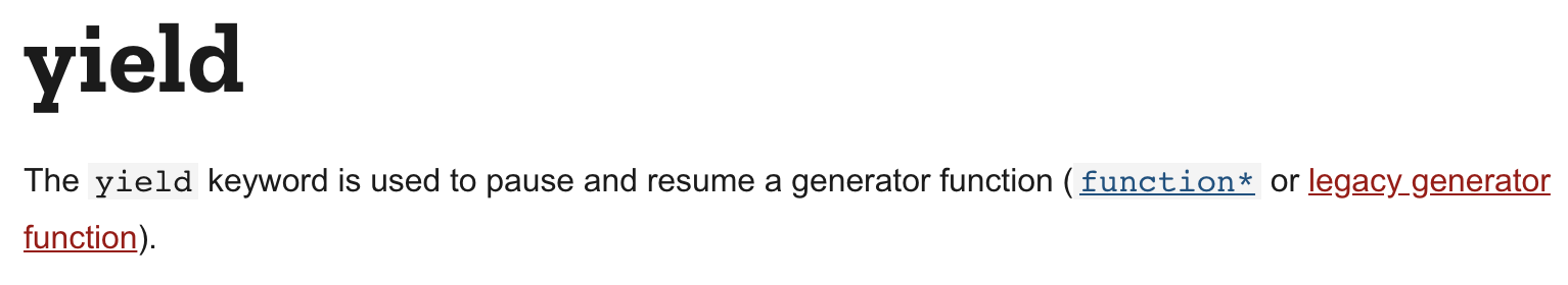 최근 한 인터뷰에서 자바스크립트의 yield를 알고 있는지 물어보셨다. 그런데 너무 당황스럽게도 6개월이 넘는 자바스크립트 공부 기간 동안 yield라는 키워드는 단 한번도 들어본적이 없었다!!!! (왜냐!! 왜 때문이냐!!?? 나란 개발자는나쁜 개발자더냐??) 🥲 그래서 인터뷰가 끝나자마자 yield를 검색해보았더니...